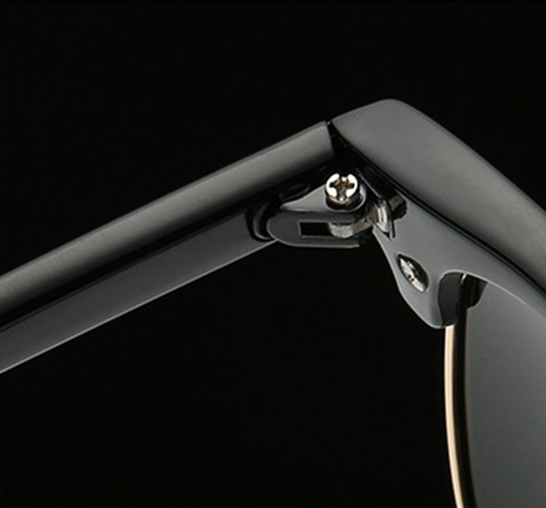 Inspired by iconic models of the past, the Grand Club Sunglasses offer a contemporary touch. The rectangular lenses with rounded corners provide excellent protection and perfectly complement the face. With a completely black frame and subtle golden accents, this model is timeless and elegant.
